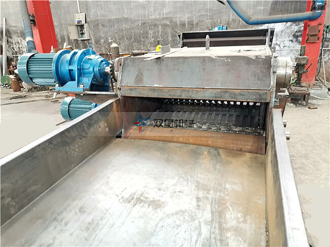綜合破碎機采用一體化設計,采用鏈板式智能進料,可根據主電機負荷自動調節進料速度。使機器滿負荷運轉不可空載運行,使進料順暢,大幅度提高 生產能力。核心破碎部分采用錘式破碎原理,物料通過設備進料輸送帶送入破碎腔體,在破碎腔體內經過狼牙輥壓料裝置、錘片式破碎裝置實現木材粉碎,粉碎后的物料經過磁力分選部分,將鐵釘等金屬分選出來,不含鐵釘的木材碎屑通過輸送帶送出,木屑廣泛用于造紙廠、家具廠、密度板、生物質顆粒廠、機制木炭廠等。